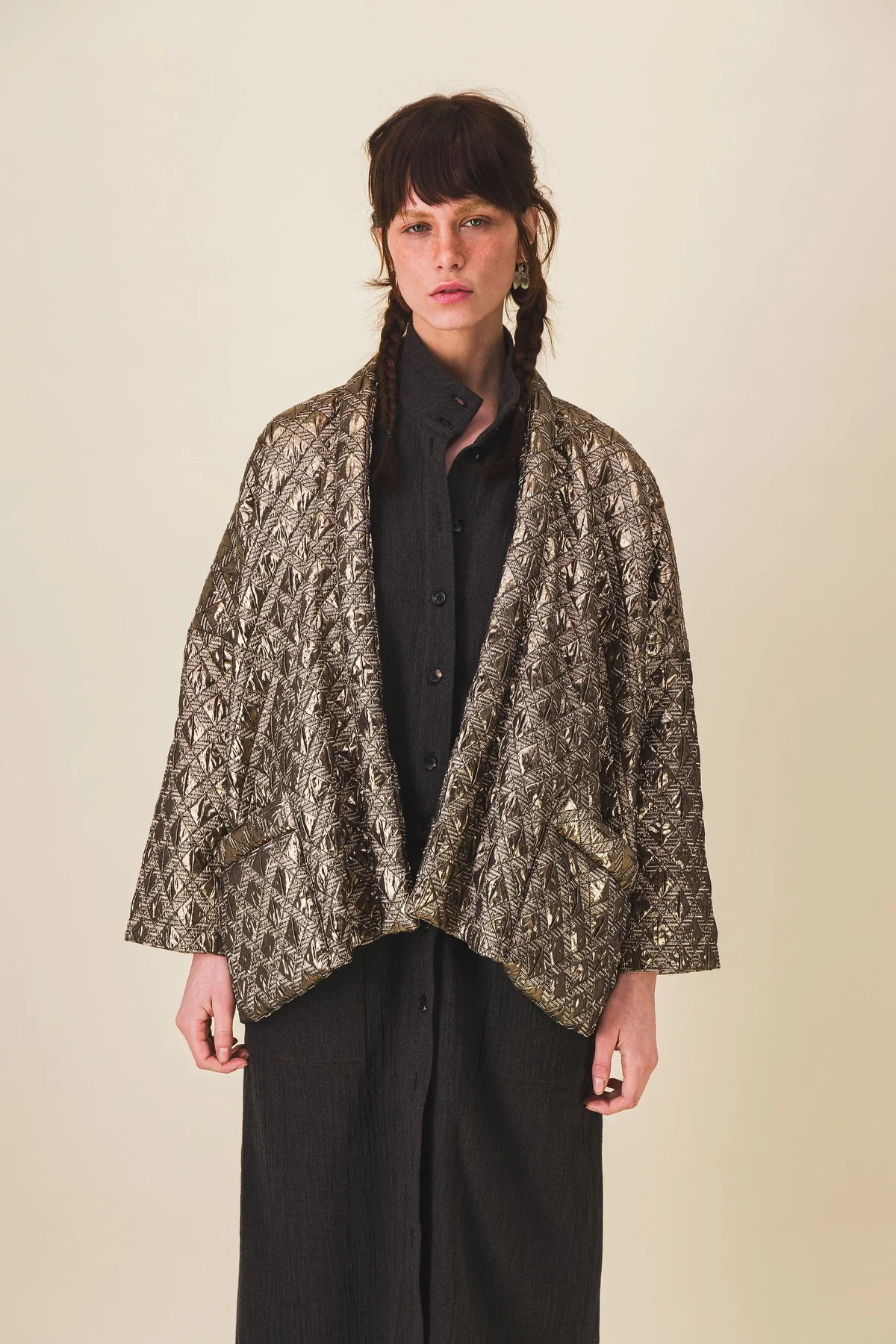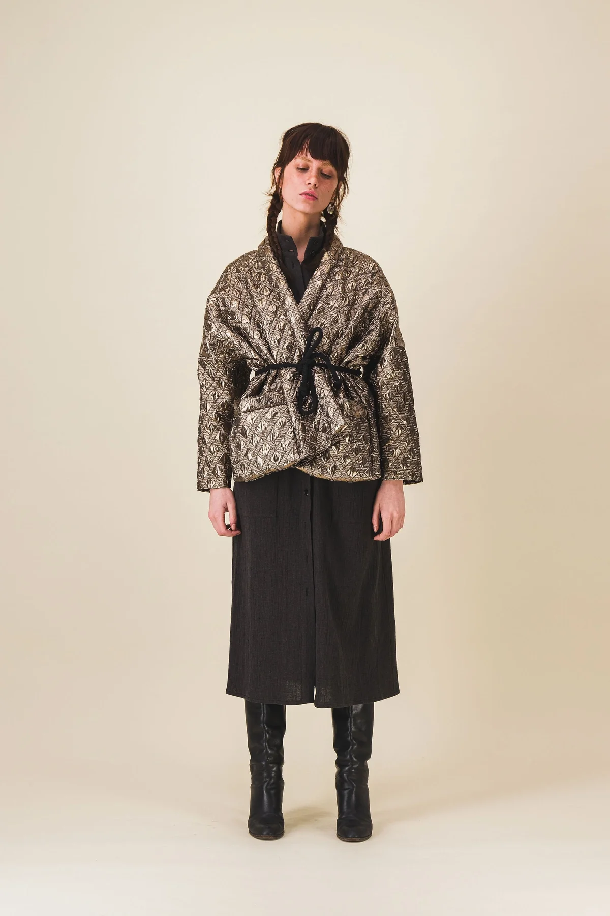 Kimono en jacquard tissé près de Lyon, coloris exclusifs. Bande et poches ouatinées. Coupe sans couture épaule, ceinturable. Intemporel emblématique de SIXSŒURS. Fabriqué à Paris